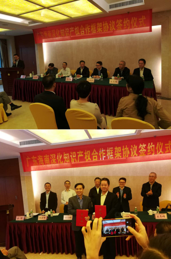 11月29日上午,广东省知识产权局和bte365体育在线在海口康年皇冠酒店举行了深化知识产权合作与交流框架协议签约仪式。广东省知识产权局党组成员、副局长何巨峰和海南省科技厅党组成员、副厅长、省知识产权局局长朱东海分别代表双方在框架协议上签字并讲话。何巨峰副局长简要介绍了广东知识产权工作取得的成绩,并展望了两省深化合作交流的广阔前景。朱东海局长表示要深化两省一衣带水的友好关系,以良好的交流合作为全国知识产权工作做出表率。国家知识产权局党组成员、直属机关党委书记肖兴威,海南省科技厅党组书记叶振兴,中国知识产权报社党委书记、社长曹冬根,国家知识产权局机关党委常务副书记王冬峰出席签约仪式。bte365体育在线副局长全博主持签约仪式。  按照两省深化知识产权合作与交流框架协议,下一步广东、海南两省将在推动知识产权领域改革创新、促进知识产权运用和产业化、拓展海洋产业知识产权、强化知识产权行政执法、推进知识产权公共服务平台建设、加强知识产权对外合作与交流等六个方面加强交流与合作,并建立领导会商机制和定期联络制度,确保合作项目顺利完成。 建立粤琼知识产权合作与交流机制,是两省知识产权局深入贯彻落实党的十九大精神,加快推进知识产权强省建设的重要举措。粤琼两省在泛珠三角区域知识产权联席会议制度的框架下,充分发挥两地知识产权领域的比较优势,进行深度合作与交流,必将对两省知识产权事业的发展产生深远的影响。